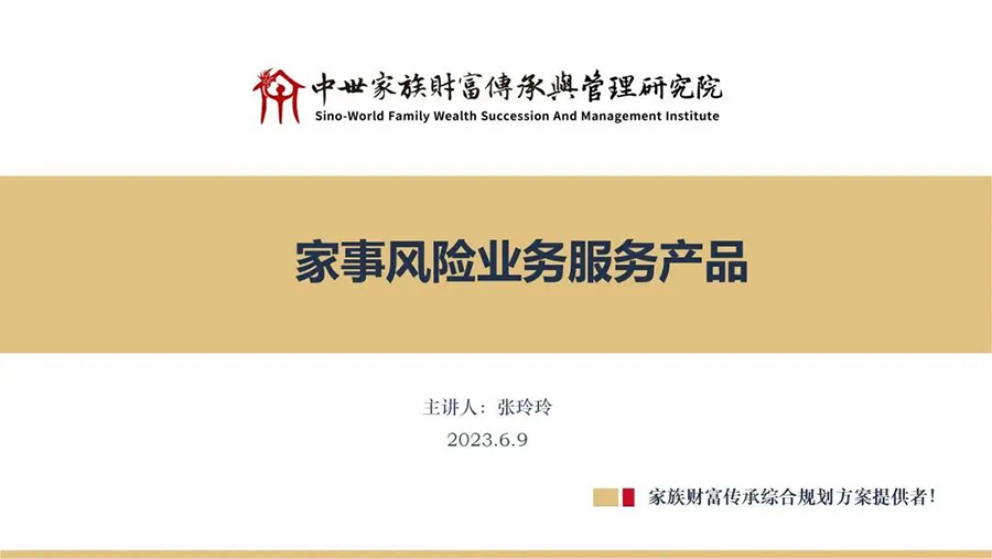 研究院副院长、秘书长、家事风险管理师张玲玲通过线上方式,从家事风险诊断、各类家事协议安排、遗产规划、复杂家事案件的诉讼及非诉处置四个方面进行分享。聚焦家族风险的甄别与预防、家族劣势群体的权益保护、亲属间共同创业及财富代持、婚姻家庭财产保障等疑难问题,描绘出研究院及业务中心在家族传承领域广阔的发展前景。家事业务的日渐丰富及高端化发展趋势,研究院团队已经朝着家事领域的高端市场迈进。