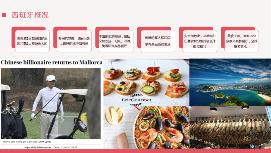 第二位线上发言的是西班牙本土开发商项目总监Penny, 她重点介绍了西班牙通过购房拿黄金居留的项目。西班牙是欧盟和北约成员国也是申根国,是欧元区第五大经济体,通过购买50万欧房产申请黄金居留的优势非常显著。