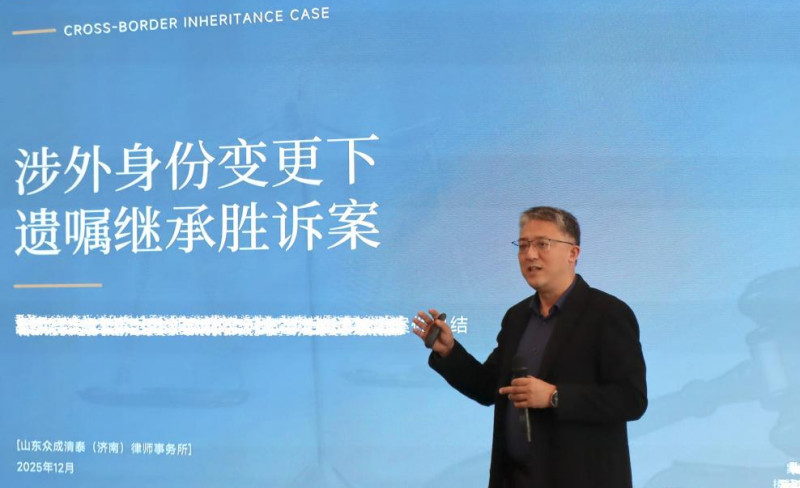众成清泰财富传承业务中心副主任、山东众成清泰(济南)律师事务所合伙人孙光明聚焦跨境遗嘱继承纠纷,以“跨境程序合规性、证据链完整性、执行可操作性”为核心化解路径。首先完成涉外当事人身份跨境公证认证,确保诉讼主体合法;再通过自书遗嘱、录音录像、证人证言等多维度证据体系构建完整证据链,明确遗产范围;将执行问题纳入整体考量,通过动态财产核查、常态化法官沟通机制、跨境授权文件指引等,实现涉外当事人 100% 跨境继承权益,为中国籍子女与外籍子女共同继承父母遗产提供了成功范例。