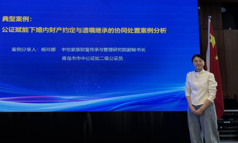 中世家族财富传承与管理研究院副秘书长、青岛市市中公证处二级公证员杨玲娜以公证赋能为核心化解路径,运用多样公证形式如视频公证打破时空限制,通过公证遗嘱规避自书/打印遗嘱的形式瑕疵;明确公证在遗产过户中的实操要点,应用遗产管理人制度搭配提存业务,实现房产交易、离婚财产分割中的风险隔离。公证可覆盖独生子女家庭跨境遗产继承、婚内财产约定、遗嘱协同处置等多元场景,在证据固定、权属清晰、流程合规等方面具有独特的价值。