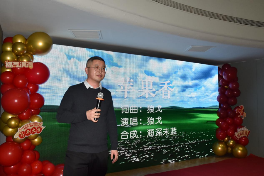 在“传承之春”晚会环节,青岛知名音乐人李军倾情献演原创吉他曲目。李老师的演奏婉转悠扬、动人心弦,优美的旋律深深打动了与会人员,为整场团拜会增添了浓郁的艺术气息与温情暖意。研究院投资项目分析师高争也倾情演唱《梁祝》《苹果香》等歌曲,表达了对新年和现场专家的美好祝愿。