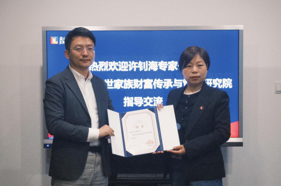 为进一步加强业务协作,共同探索更具操作性的家族信托服务模式,破解家族企业传承难题,中世家族研究院特聘许钊海担任研究院研究员。张玲玲现场为其颁发聘任证书。